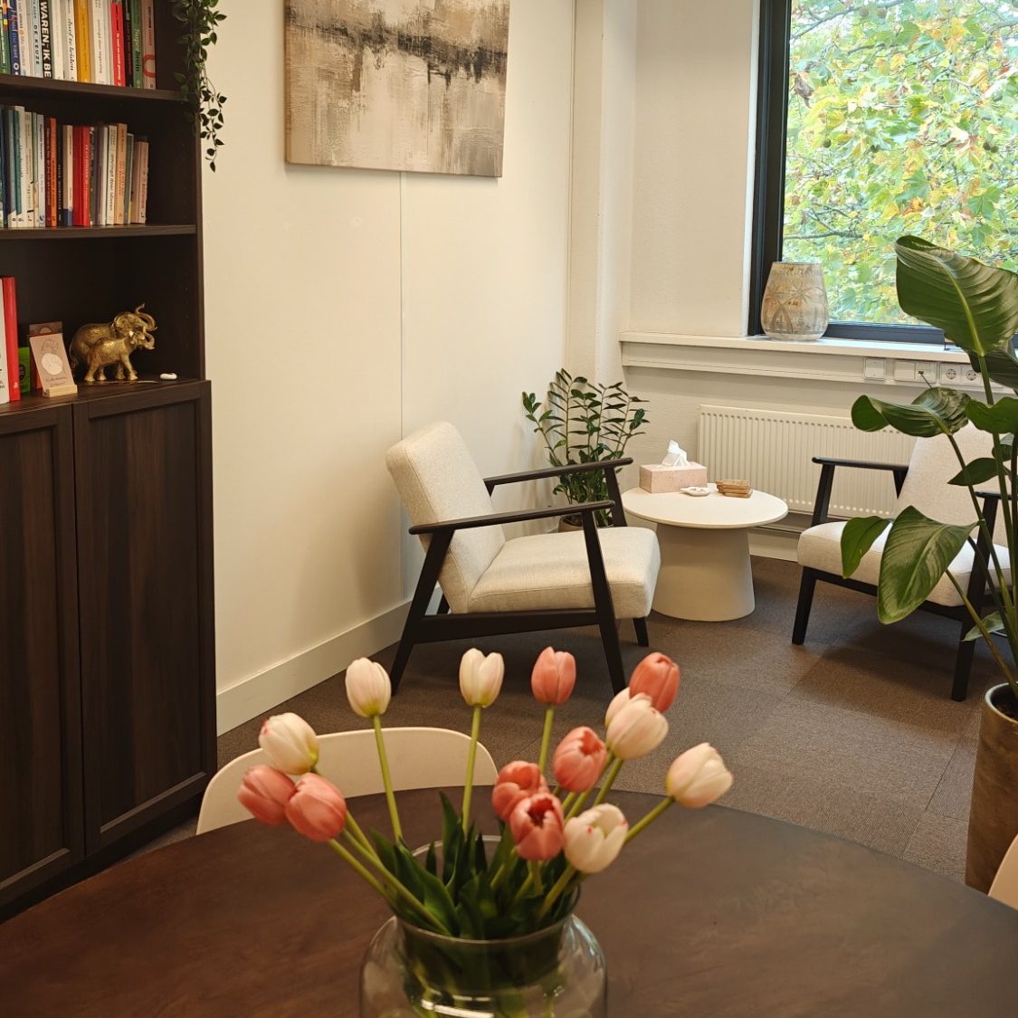 Mijn rol is om bedding te bieden. Ik sta naast je, niet boven je. Ik begeleid je in het waarnemen, voelen en verdragen van wat zich aandient. Dat kan intens zijn, maar je hoeft het niet alleen te dragen. Juist doordat het niet wordt weggepraat of geanalyseerd, kan er beweging ontstaan die dieper gaat dan woorden. Daarnaast geef ik veel psycho-educatie, omdat écht voelen pas mogelijk is als je het begrijpt.